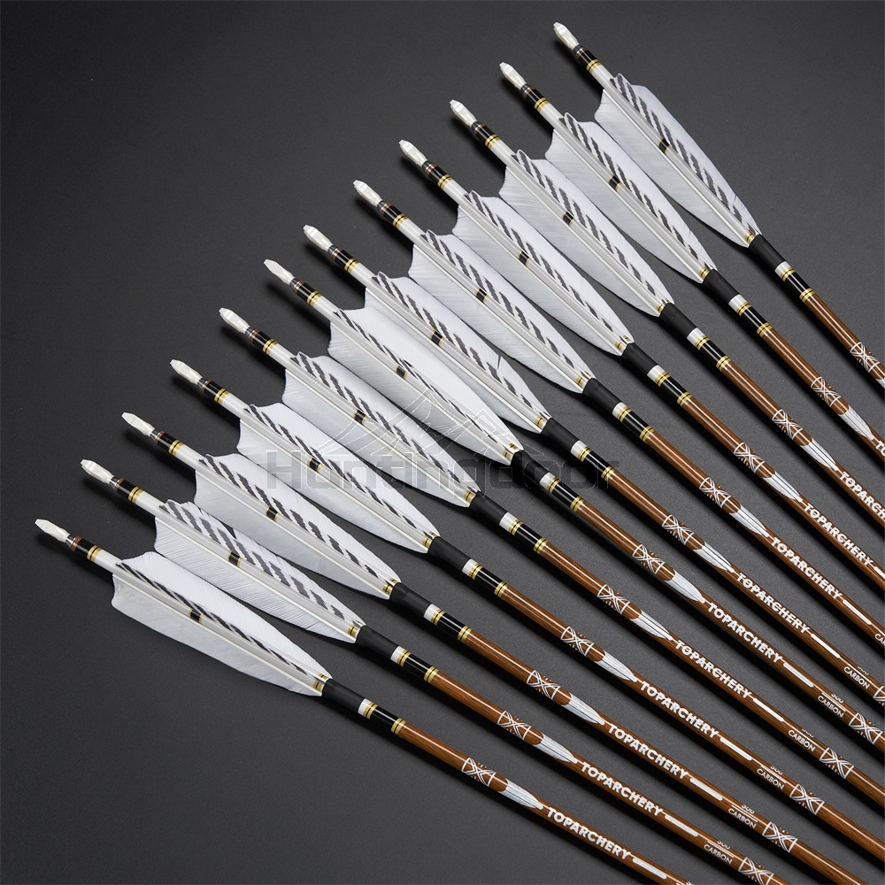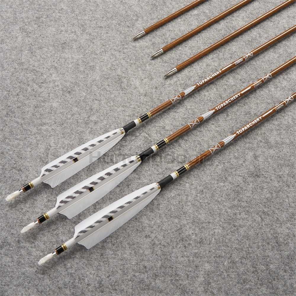 natural barred white feather wood finish carbon arrows